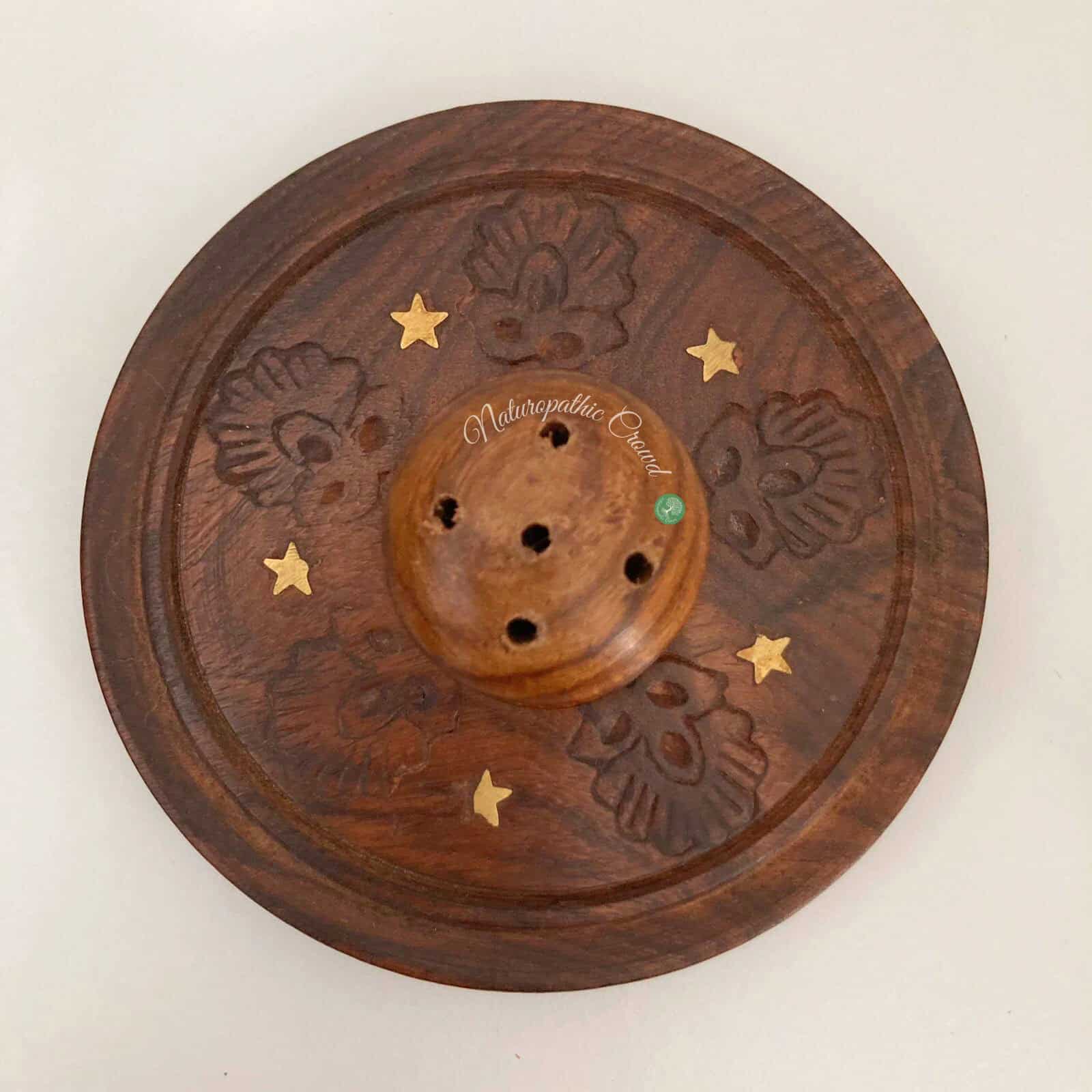 Porta Incenso Rotondo in legno intarsiato con ottone